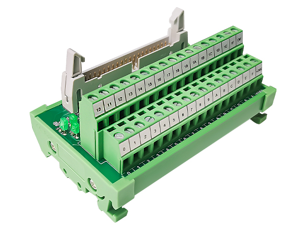 ① 采用40P的MIL連接器作為進線端;配合本公司相對應的X系列線纜,可以直接對應市面上任意一款帶16位輸入/輸出的PLC模塊,并且整理為2組16位的端子;