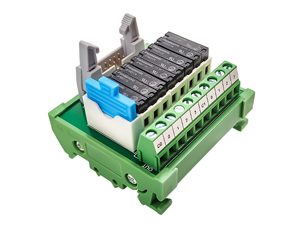 ① 采用8位繼電器模組,體積減少到最小 ② 采用10位連接器作輸入端,單排端子臺作輸出端,輸出段預留兩個COM口 ③ 采用L ED動作顯示,各輸入輸出端狀態-目了然 ④ 繼電器線圈帶浪涌抑制回路,延長了繼電器模組壽命,將線路電磁干擾降到最小 ⑤ 使用Panasionic Pa系列繼電器; ⑥ 配合本公司本系列其他產品,完全實現高效率省配線的連接。