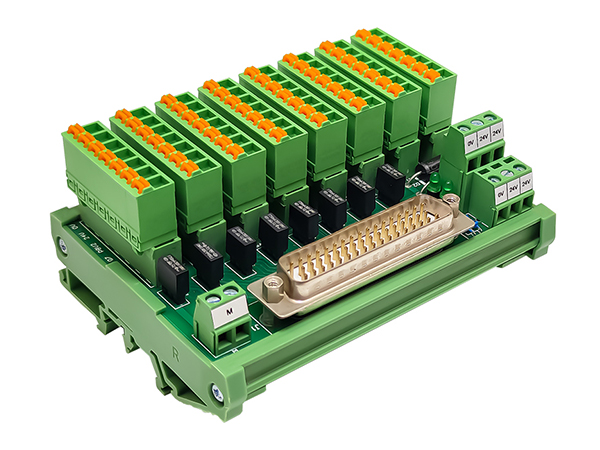 ④ 柵欄式端子輸出 ⑤4路繼電器模組,體積減小到最小⑥ 采用LED動作顯示,各輸入輸出端狀態 一目了然